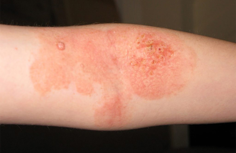 - Da đỏ, sần, mụn nước nhỏ