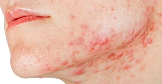 - Vị trí: Tập trung quanh cằm – quai hàm – cổ