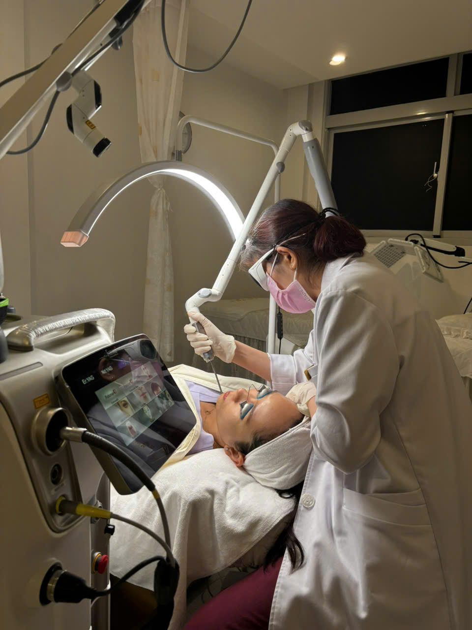 Thực hiện chiếu tia laser Toning